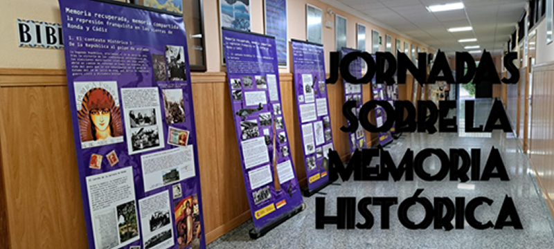 Ya en el instituto continuamos con la exposición itinerante Memoria Recuperada, Memoria Compartida, financiada por la Asociación Papeles de Historia y por Ministerio de la Presidencia del Gobierno, para “contribuir a recuperar la historia de los hechos represivos acaecidos en la Serranía de Ronda y el valle del Genal” tras el golpe de estado fascista del 18 de julio de 1936 y “la recuperación de la memoria personal de las víctimas del franquismo”.
