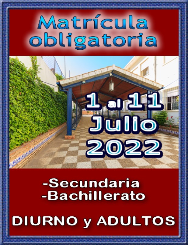Todo nuestro alumnado de secundaria y bachillerato tiene la obligación de matricularse del 1 al 11 de julio de 2022.