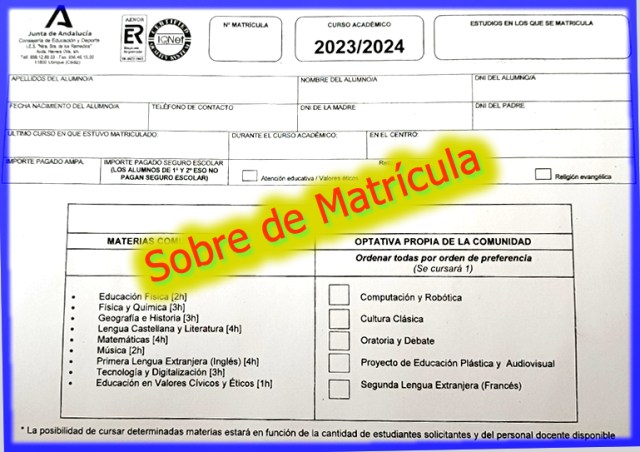 Todo el alumnado debe matricularse del 1 al 10 de julio de 2023.