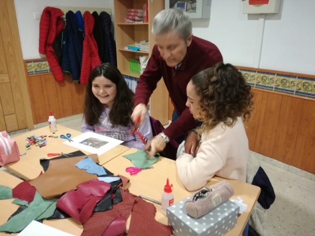 Para nuestro desafío los alumnos fabricaron  en clase un marco para una foto suya usando retales de piel que encontraron por sorpresa en sus aulas. A continuación visionaron en el salón de actos del centro un vídeo y un montaje de fotos con croma elaborado por los profesores que trabajarán el proyecto, en los que los propios profesores modelaban chaquetas y bolsos de Ubrique.