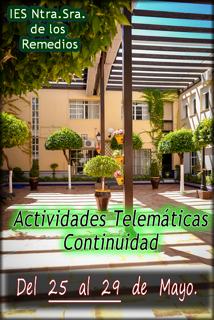 Leer más ...Actividades telemáticas de continuidad para la semana del 8 de junio de 2020. Ánimo a todos.