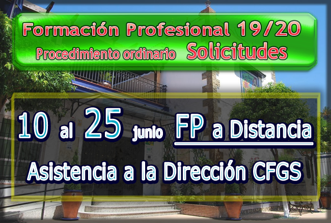 Leer más ...Sesión de presentación (Curso 2019/20) La sesión de presentación para el curso 2019/20 de la Formación Profesional a Distancia tendrá lugar el día 16 de septiembre a las 18:00 horas para el alumnado matriculado en alguno de los ciclos formativos siguientes: Administración y Finanzas. Agencias de Viajes y Gestión de Eventos. Asistencia a la Dirección. Atención a Personas en Situación de…