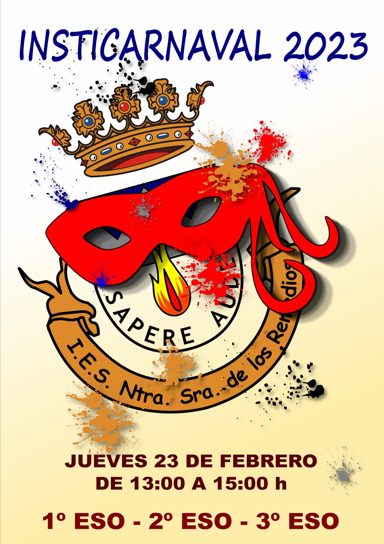 El pasado jueves 23 de febrero se celebró en nuestro centro el Insticarnaval 2023, consistente en un concurso de disfraces para los cursos de 1ESO, 2ESO y 3ESO.