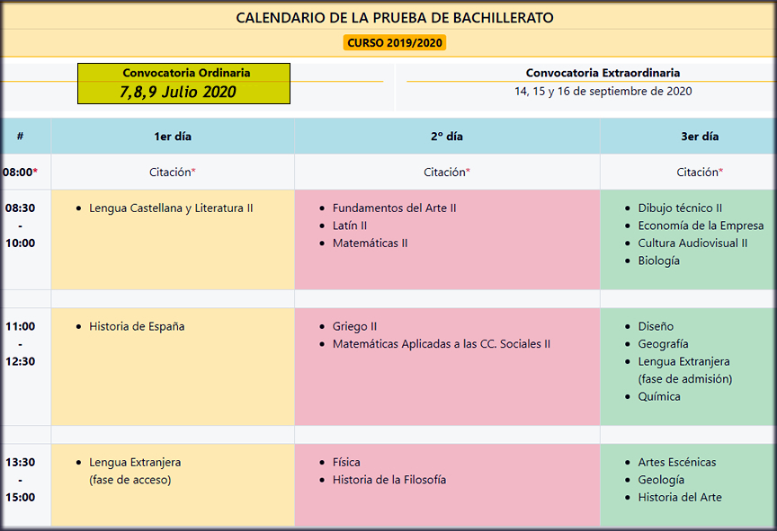 Leer más ...Se inicia el procedimiento de inscripción y matricula en las pruebas de evaluación y acceso a la Universidad; nuestra selectividad. 1º) Cumplimentar el formulario de matrícula – PLAZO: El formulario estará abierto hasta el día 22/06/2020 a las 10:00h. Se enviará por email a todos los alumnos de 2º de Bachillerato y también a aquellos…